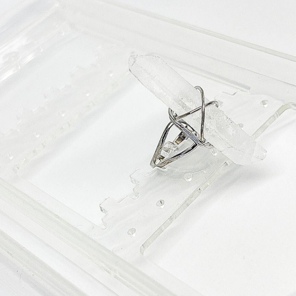 このリングは、約7mmのロッククリスタルをそのままの結晶の形で使用した、調節可能なデザインです。クリスタルの自然な美しさを活かした大ぶりで個性的なスタイルが特徴で、手元に高級感と自然のエネルギーをもたらします。クリスタルの透明な輝きが、どんな場面でもエレガントな印象を与えます。調節可能な仕様により、どんな指にも快適にフィットします。