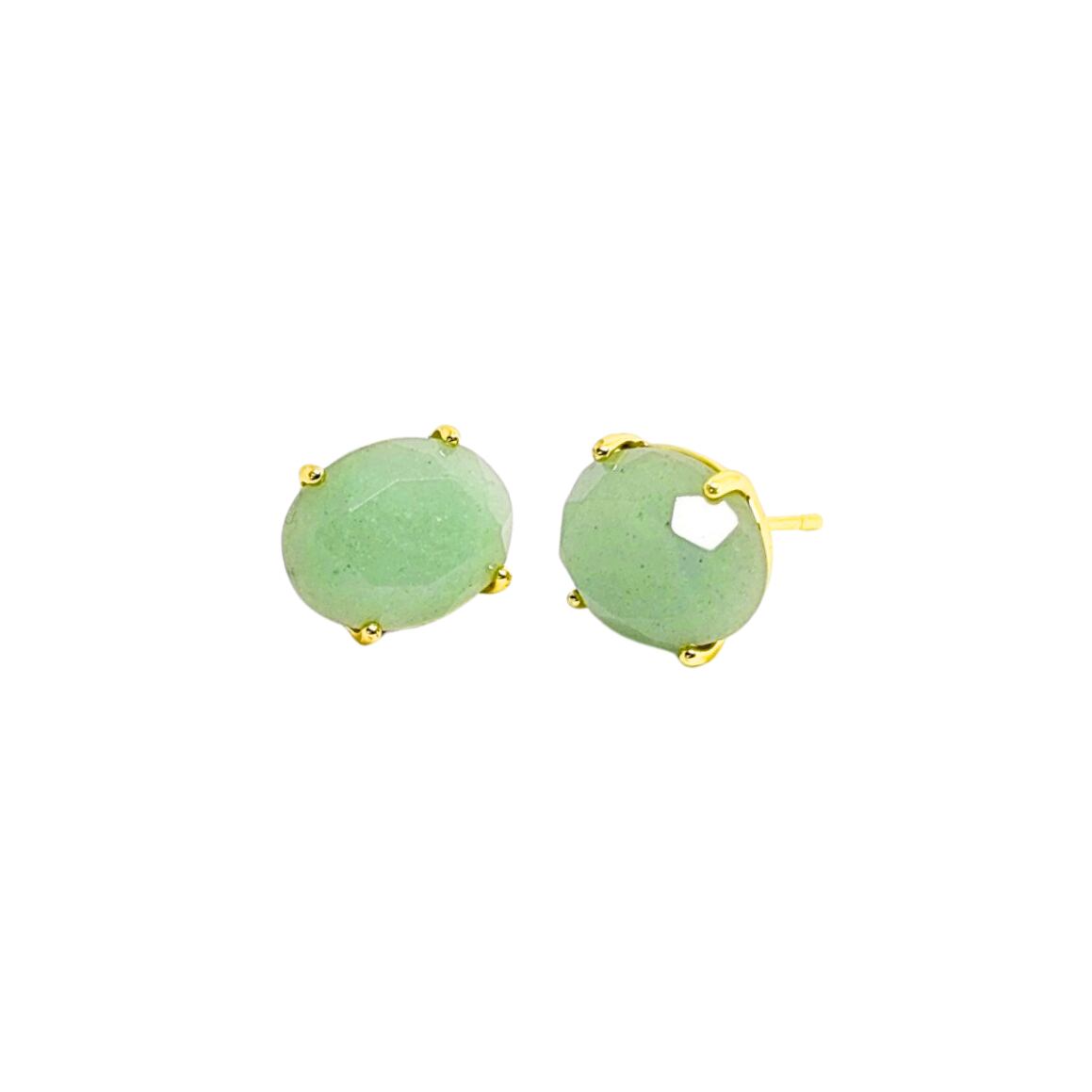 このピアスは、楕円形に美しくカットされた天然石が特徴のエレガントなジュエリーです。大きな天然石が耳元で美しく輝き、鉤爪(クロー)セッティングによりしっかりと固定されています。選べる2種類の石、深みのある紫色が魅力のアメジストと、爽やかな緑色が特徴のグリーンアベンチュリンからお選びいただけます。どちらの石も、その独特な色合いと輝きで、一目で視線を引きつけます。